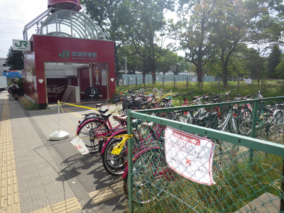 違法駐輪している自転車の中には,「宮城野高校」や「宮工高」のステッカーが貼られた自転車がある。一例として,写真を撮りやすい位置に停めている「宮城野高校」のステッカー付自転車を,ここに載せておこう。