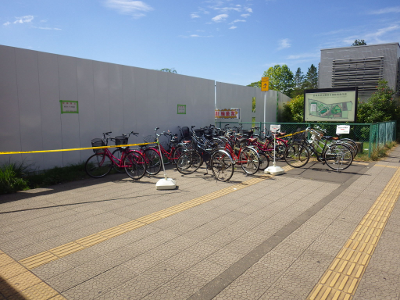 に引き続き,この日も,点字ブロックの上に支柱が置かれたテープの前に駐輪するものがおり,点字ブロックの使用と言う観点からは,ますます悪い状況となっている。