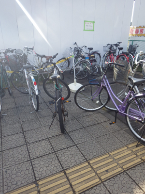 台風(仙台に最も近づいた頃には温帯低気圧になっていたようである)が去り,青空がきれいなこの日,宮城野原駅前に違法駐輪された自転車の数は,いつもより気持ち少ないように見える。それに伴い,点字ブロックの利用を阻害する自転車の数も,いつもより少々少なめに見える。