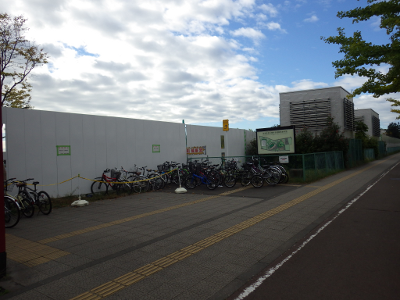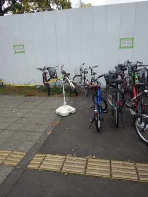 駐輪禁止であることを知らせるテープの支柱の位置は,ここ数日の定位置だ。この日は,そもそも自転車の数が少ないこともあり,壁際に駐輪している自転車の数が前日なみに少なかった。