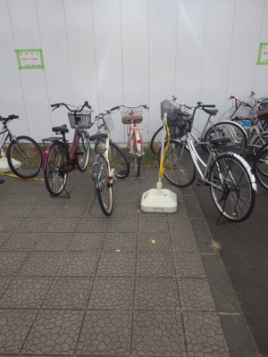 駐輪禁止であることを知らせるテープを張る支柱は,前日と同様に位置であった。しかし,駅出口から最も離れた部分のテープが切られ,そこに自転車が停められていた。ついに結界が破られた。このテープを用いた方法では,ここの問題が解決できないことは,これではっきりしたのではないか。繰り返しになるが,JR東日本の担当者は,迅速に別の対応策を考えるべきである。