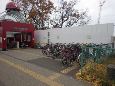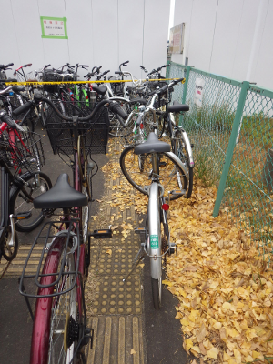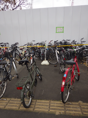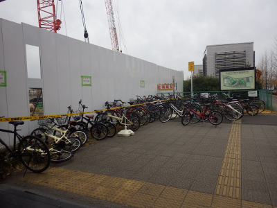 とても寒かったこの日,宮城野原駅前に違法駐輪された自転車の数は,いつもより若干少なく見えた。点字ブロックの上に置かれた自転車の数も,いつもより数台少ない感じだ。