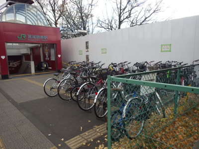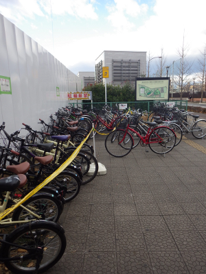 出張から帰り,久々に普段どおりの時間に宮城野原駅前を通りかかったこの日,違法駐輪された自転車の数は,出張前より気持ち少ないように見えた。点字ブロックの上に置かれた数が,2/3位の数である。