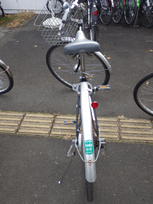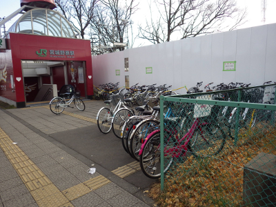 この日も,点字ブロックの上に停められた自転車の中には,常連である宮城野高校のステッカーが貼られた自転車があった。また,点字ブロック上で,1台だけ他の自転車から離れた位置に停められた自転車もあった。