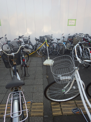 この日,宮城野原駅前に違法駐輪された自転車は,前日よりは若干少なく見えたが,いつも通りの数であるようだ。点字ブロックの上に置かれた自転車の数は,明らかに前日よりは少なかった。