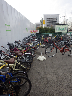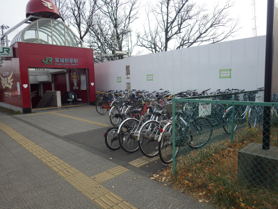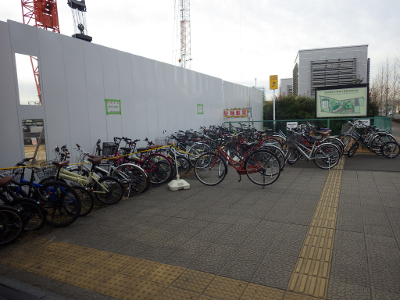 高校,大学の多くが冬季休業期間に入ったと思われるこの日,宮城野原駅前に違法駐輪された自転車は,いつもより少し多いように見える。点字ブロックの上に置かれた自転車は,いつもより若干少なめであるが,その分,点字ブロックの奥側ぎりぎりのところに停められた自転車の数が,いつもより多かった