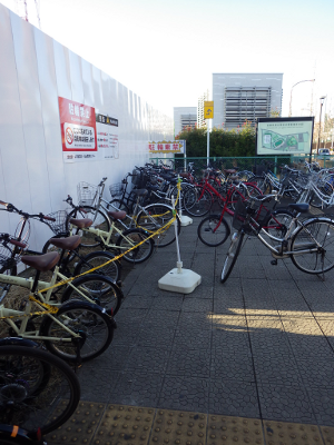 連休明けの火曜日,宮城野原駅前の違法駐輪の自転車の数は,だんだん元に戻ってきた。点字ブロックの上に置かれた自転車の数も,昨年末の平日に近づいてきている。