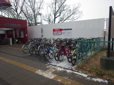 また,街が雪化粧をしはじめたこの日,宮城野原駅前に違法駐輪された自転車の数は,いつもより多いように見えた。点字ブロックの上に置かれた自転車の数は,概ね,いつもどおりの数であった。