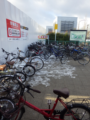 この日,宮城野原駅前に違法駐輪された自転車の数は,概ね,いつもどおりであった。点字ブロックの上に置かれた自転車の数も,いつもと変わらない。ただし,いつもは多くの自転車が前輪が点字ブロックの上になるように置かれているが,この日は,前輪が点字ブロックの上に置かれているものと,後輪が点字ブロックの上に置かれているものの割合が半々であった。そのため,一見,点字ブロックの上に置かれた自転車の数は,少なく感じるかもしれない。