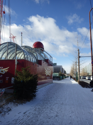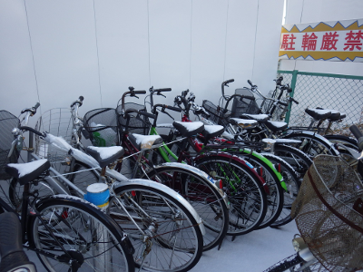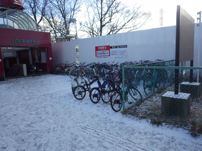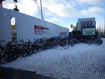 前の晩から雪が降り,まちがまた雪化粧したこの日,宮城野原駅前に違法駐輪された自転車の数は,前日と同程度であった。点字ブロックの上に置かれた自転車の数も,同様である。前日,ここに駐輪された自転車が少なめだったのは,雪が降ることを想定してのことだったのだろうか。