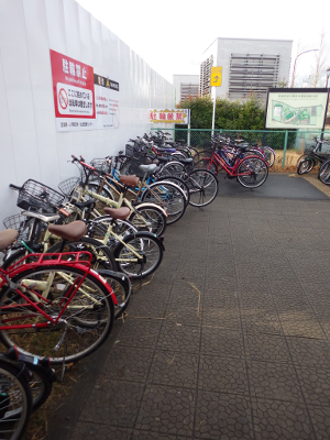 道から雪が消えてこの日,宮城野原駅前に違法駐輪された自転車の数は,概ね,平常通りの数であった。点字ブロックの上に置かれた自転車の数は,いつもより数台少ない感じだ。