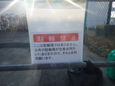 宮城野原駅前がバリケード封鎖されて3日目のこの日,駅前に新たに違法駐輪された自転車は1台だけであった。点字ブロックの上に置かれた自転車は,この日も皆無である。違法駐輪のため点字ブロックが使えないという問題については,この3日間連続で解消している。