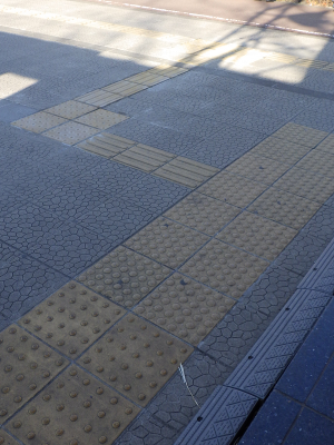 2日連続で,駅前に某宗教の勧誘員が立っていたこの日,宮城野原駅前に違法駐輪された自転車は,バリケード内の駅入口側に置かれた1台と,駅舎横に停められた3台,さらに,歩道に無理やり停められた1台の計5台であった。点字ブロックの上には,自転車はない。