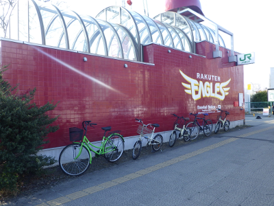 この日,宮城野原駅前に違法駐輪された自転車は,駅舎横に停められた5台であった。点字ブロックの上には,自転車はない。