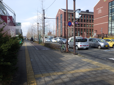 この日,宮城野原駅前に違法駐輪された自転車は,歩道に停められた1台のみであった。点字ブロックの上に停められた自転車はない。