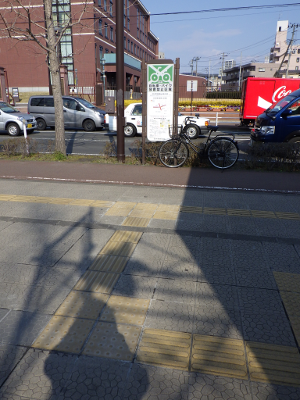 この日,宮城野原駅前に違法駐輪された自転車は,歩道に停められた1台のみであった。点字ブロックの上に停められた自転車はない。