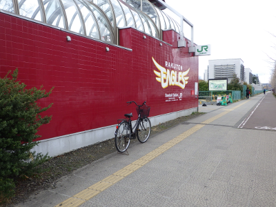 歩道に停められた自転車は,3月29日に停められていた自転車と同一のものだ。駅舎横の砂利の部分ではなく,歩道部分に置いているのは,歩道はJR東日本,宮城県,仙台医療センターの管理地ではないため,ここならばそれら三者から警告を貼り付けられることはないと考えてのことかもしれない。しかし,ここに置かれると,歩行者にとって邪魔だ。