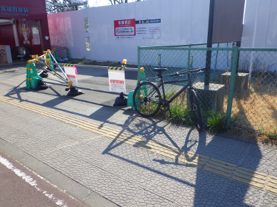 この日,宮城野原駅前に違法駐輪された自転車は,駅舎横に停められた1台と,フェンスの横に停められた1台の計2台であった。これらのうち,フェンスの横の自転車は,これまでも何度も違法駐輪されていた自転車だ。点字ブロックの上に停められた自転車はない。