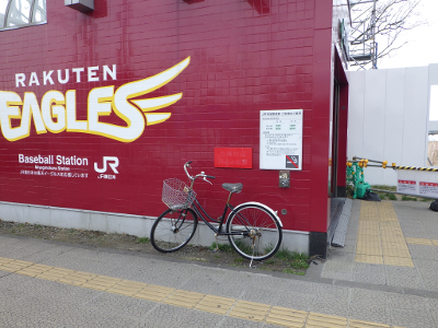 駅舎横に停められた自転車は,
