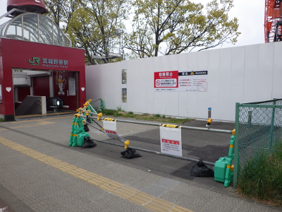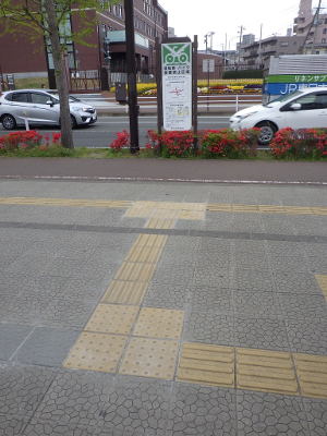 ゴールデンウィーク中の平日であるこの日,宮城野原駅前に違法駐輪された自転車は,駅前の歩道の車道側に置かれた2台であった。点字ブロックの利用に邪魔になる位置に置かれた自転車はなかった。