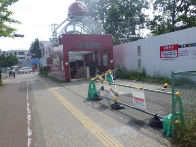 仙台医療センター側の駅舎横に違法駐輪された自転車