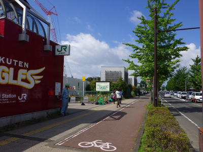 気持ちよく晴れたこの日,宮城野原駅の各出入口前には,仙台市委嘱の自転車誘導員が立っていたにも関わらず,仙台医療センター側の駅の敷地から少々医療センター側に外れた思しきところに,1台の自転車が違法駐輪されていた。点字ブロックの上に置かれた訳ではないが,点字ブロックを利用しての歩行に支障が出る可能性がある位置である。私の通勤経路である球場側には,違法駐輪された自転車はなかった。