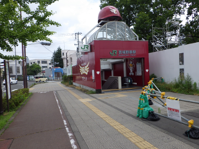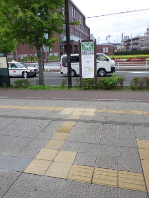 朝は雨が降っていたこの日,所用でいつもより2時間遅く宮城野原駅前に到着したところ,この時間帯でも,宮城野原駅前に違法駐輪された自転車はなかった。点字ブロックの利用に支障となる障害物もなかった。