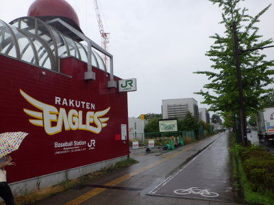 朝から雨が降っていたこの日,宮城野原駅前の球場側の駅舎付近に違法駐輪された自転車はなかった。球場側の点字ブロックの利用に支障となる障害物もなかった。