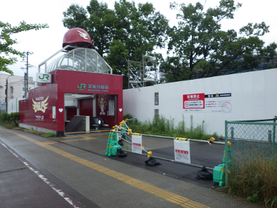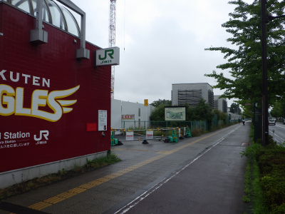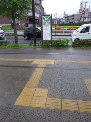 朝から雨が降るこの日,いつもより2時間ほど遅く宮城野原駅に到着したところ,球場側の駅前付近には違法駐輪された自転車はなかった。点字ブロックの利用に支障となる障害物もなかった。