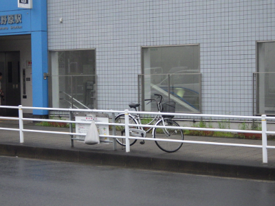 の駅舎前には,1台の自転車が違法駐輪されていた。違法駐輪が常態化しないよう,