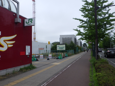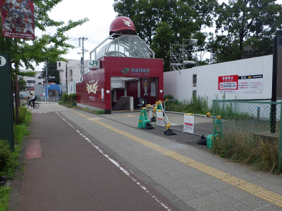 曇天のこの日,宮城野原駅の球場側付近には違法駐輪された自転車はなかった。点字ブロックの利用に支障となる障害物もなかった。