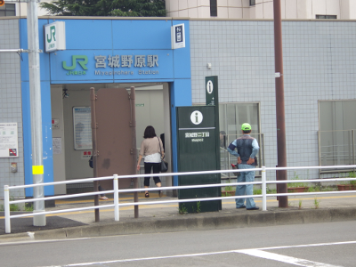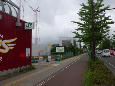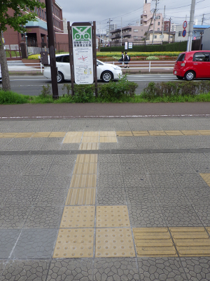 に仙台市委嘱の自転車誘導員が立つこの日,宮城野原駅の球場側付近には違法駐輪された自転車はなかった。点字ブロックの利用に支障となる障害物もなかった。