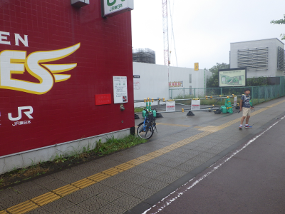 違法駐輪されていた。点字ブロックの端に微妙にかかる位置だ。写真を撮っていたら,持ち主の子供が現れたので,点字ブロックにかかる位置に駐輪すると,視覚障害者が困ることがある旨伝えたところ,頷いて聞いていた。