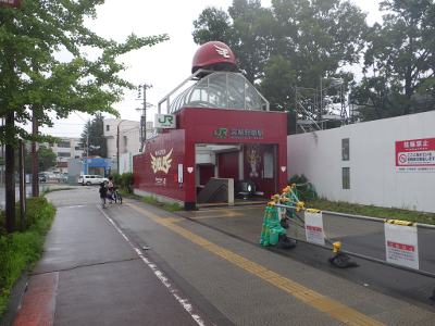 朝から雨が降ったり止んだりしていたこの日,宮城野原駅の球場側付近には,