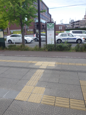 。この位置の違法駐輪は,視覚障害者の点字ブロック使用には支障をきたさないが,交通の邪魔である。駅管理者には,駅の敷地内だけではなく,周辺環境まで含めた管理を確実に行っていただきたい。