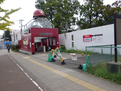 曇天のこの日,宮城野原駅前に違法駐輪された自転車はなかった。点字ブロック利用の支障となるような障害物もなかった。