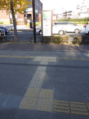 気持ちよく晴れたこの日,宮城野原駅前に違法駐輪された自転車はなかった。点字ブロック利用の支障となるような障害物もなかった。