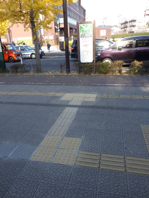 2日続けて気持ちよく晴れたこの日,宮城野原駅前に違法駐輪された自転車はなかった。点字ブロック利用の支障となるような障害物もなかった。