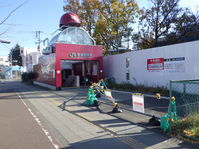 よく晴れたこの日,宮城野原駅前に違法駐輪された自転車はなかった。点字ブロック利用の支障となるような障害物もなかった。