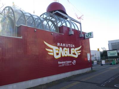 よく晴れたこの日,宮城野原駅前の球場側の駅舎付近には,違法駐輪された自転車はなかった。また,点字ブロック利用の支障となるような障害物もなかった。