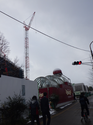 仙台医療センターの新築工事現場脇に設置されたベンチの前には,今日も