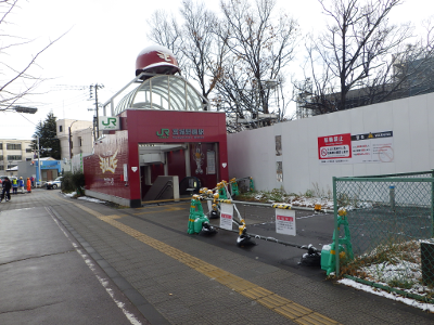 仙台市内で初積雪となったこの日,宮城野原駅前に違法駐輪された自転車はなかった。点字ブロック利用の支障となるような障害物もなかった。