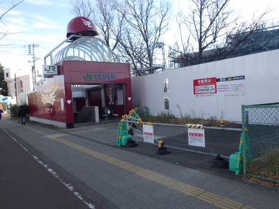 また,バリケードを張ると,バリケードの外側に無理やり違法駐輪をするものが出てくると思っていたが,案の定,その通りの結果となっている。この位置に1台自転車が停められているだけであれば,点字ブロックの利用の支障にはならないが,真似をする自転車が増えてくると,確実に,点字ブロックの利用の支障につながることを指摘しておこう。