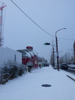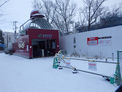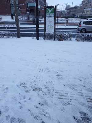 雪が積もったこの日,宮城野原駅前に違法駐輪された自転車はなかった。点字ブロックは雪に埋もれかけていたが,それ以外に利用の支障となるような障害物はなかった。
