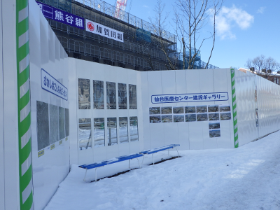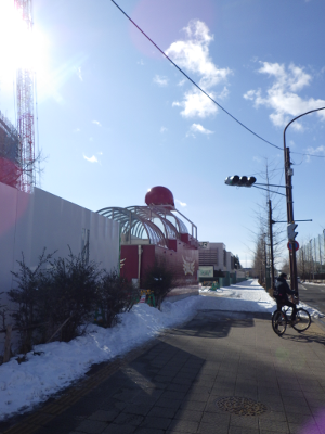 地面に雪がまだ残る土曜日であるこの日,宮城野原駅前の球場側駅舎周辺に違法駐輪された自転車はなかった。