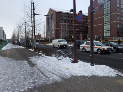 仙台医療センターの新築工事現場脇の旧ベンチの周りには,昨年末から放置された2台の自転車が,未だ放置されっぱなしになっていた。その脇に投げ捨てられていたお茶のペットボトルは,片付けられていた。なお,前日,ペットボトルのように見えていたのは,雪の固まりであった可能性もある。