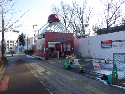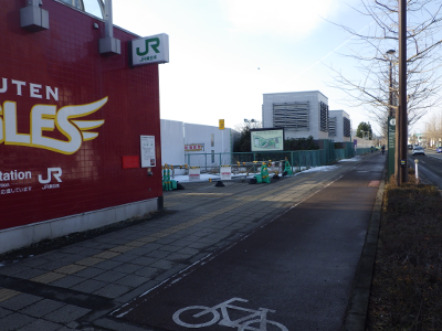 この日,宮城野原駅前の球場側の駅舎周辺に違法駐輪された自転車はなかった。点字ブロック利用の支障となるような障害物もなかった。