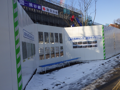 仙台医療センターの新築工事現場脇の旧ベンチの周り