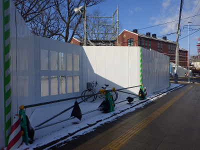 仙台医療センターの新築工事現場脇の旧ベンチの周り