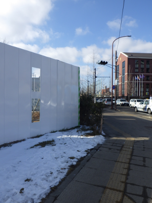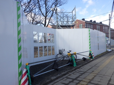 仙台医療センターの新築工事現場脇の旧ベンチの周り